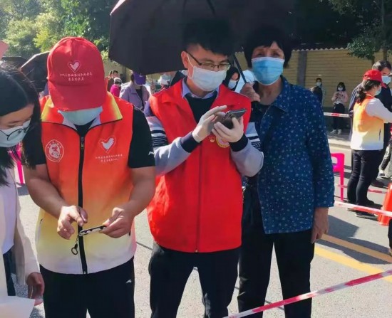 从3月10日开始,江城区侨联的党员志愿者身着红马褂投入到城东街道鹰山社区第一线参与抗疫战斗,协助做好人员信息登记、帮助群众录入核酸信息、进行体温检测、维持现场秩序等等,保障了检测现场的井然有序和居民日常生活的需求。烈日当空,气温炎热,党员志愿者的衣衫已湿透,但他们依然坚持认真工作,积极发挥党员先锋模范作用,为全力打赢疫情防控阻击战做出应有的贡献。