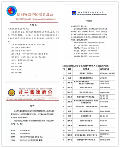 闽籍侨团积极响应号召,为在乌侨胞、留学生提供援助服务
