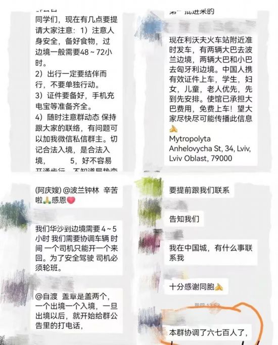 波中侨商联合会和几位乌克兰留学生负责人建立“转移波兰微信群”,认真负责、耐心的讲解和沟通、及时提供信息,指导撤离路线,协调和帮助了600余人安全离开战区,入境波兰。