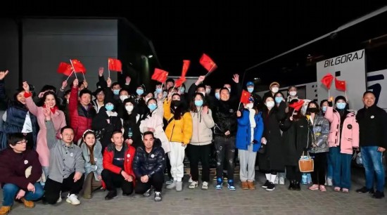 3月8日,波兰时间上午8点,200余名撤离乌克兰的中国同胞进行了第二轮核酸检测,他们将乘坐由厦门航空包机执飞回中国的航班回国。登机前,波兰侨界为他们举行了欢送仪式,大家挥舞着手中的国旗,齐声高唱《歌唱祖国》,满怀期待回到祖国的怀抱。
