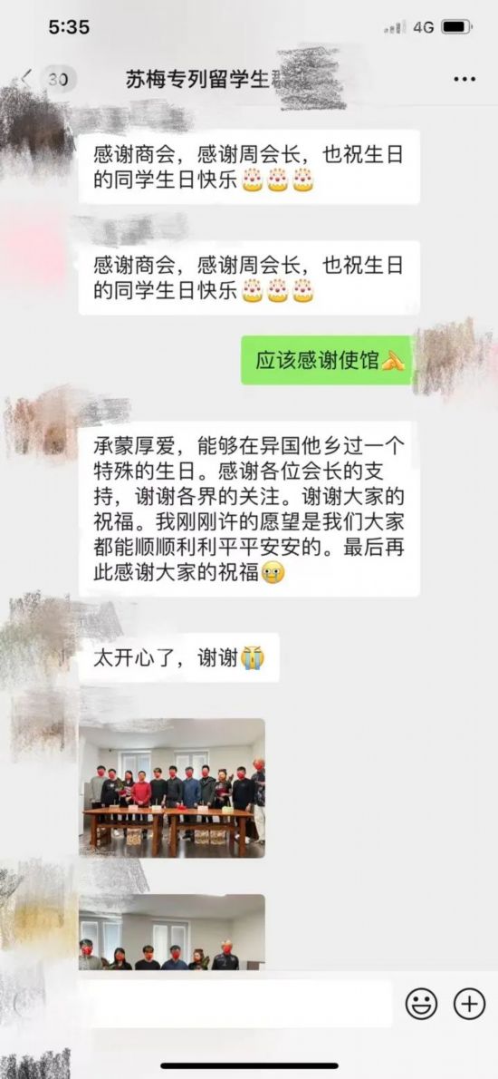 多日以来,协调小组对学生们的生活照顾得无微不至。他们发现当地的米不好吃,专程赶到布达佩斯买来整车的泰国香米;学生们想吃西红柿炒鸡蛋,普雷绍夫的超市里买不到那么多原材料,他们就去科希策的麦德龙采购;被隔离的学生没有吹风机、拖鞋,他们就挨个房间统计需求,统一配发。3月16日,同学们又迎来了一个小惊喜,协调小组为在三月份过生日的6位留学生举办集体生日派对,他们为每个过生日的学生准备了生日礼物,精心订制了专属的生日蛋糕,还为女生准备了鲜花,令留学生们备受感动。一件件小事被学生们热议着,似乎语言已经太过苍白,难以言尽他们此时的心声。