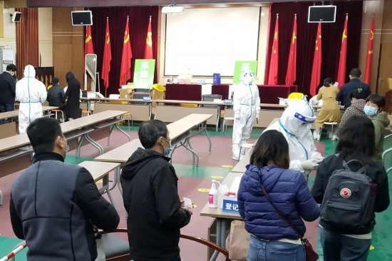 3月17日下午,南京市侨联组织6名机关干部配合中山门社区开展核酸检测。他们坚守在健康码查验、体温测量、防护提醒、秩序维持、信息登记等各个岗位。