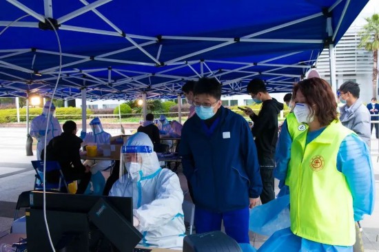 交大医学院附属瑞金医院,第一时间组织医疗专家进驻交大进行现场指挥。区侨界政协委员、交大医学院侨联常务副秘书长、瑞金医院医务一处副处长杨之涛就是其中一员,他负责驻扎交大指挥核酸检测,协调专业设备的进驻,保障抗疫工作正常运行。