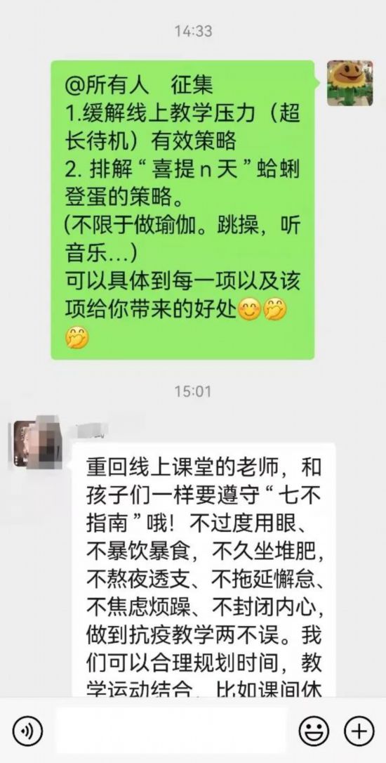 张敏带领老师们迅速完成了在线教学工作方案的制定、线上教学互动课表的排定、在线教学疫情防控方案,并根据第一天的线上教学和学习的情况,精心编辑发送了两期公众微信号。张敏说,平日学校严格教育教学管理流程,督促老师们下载好以往的“空中课堂”资料,打包入移动硬盘随时备用,再及时总结2020年线上教学的经验,使得学校能够坦然迅速行动落实线上教学。根据一周的教学情况,张敏及时组织老师进行线上教学小结,关心师生的心理健康。