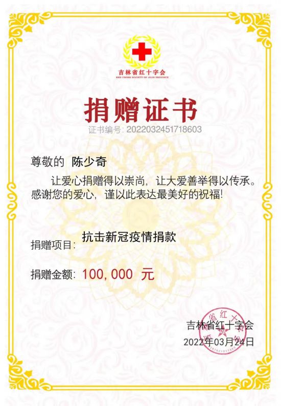 “吉林疫情形势怎样了?我们在国外看到新闻很是牵挂啊。”“看到报道这次吉林疫情形势比较严峻,你们一定要做好防护,多多保重啊。”“我是吉林的老朋友,我想为吉林抗疫捐款。”近日,吉林省侨联领导和工作人员接到很多来自世界各地侨团和侨胞朋友们的关心和问候,深深感受到海外侨胞对国内同胞的关切和关注,一次次被“中华一家亲”的骨肉亲情所感动。欧洲青田同乡总会会长、法国中国和平统一促进会执行会长、省侨联海外顾问、省海联会名誉会长陈少奇先生说,最近从新闻上了解到很多关于吉林省新冠疫情的消息,非常牵挂,希望能够为吉林省的疫情防控工作做些事情,尽自己的一点绵薄之力。多年来,自己和吉林省侨联建立起源远流长的深厚情谊。现在吉林省正在集合所有的力量和资源抗击疫情,我虽然身在海外但一直心系吉林,牵挂吉林省的老朋友,希望大家都平安健康地度过目前的困难阶段,坚信吉林省疫情防控工作一定会功成告捷。我为吉林省侨联捐赠10万元人民币,用于吉林省防疫抗疫工作,以尽我帮扶助力吉林的一片心意。