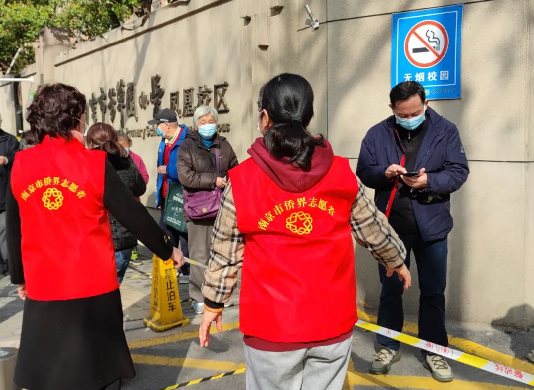 南京市鼓楼区凤凰街道教工新村、蓝天园等社区以及挹江门街道核酸检测点位上,宁侨志愿者们身穿红马甲,站在了守卫居民健康安全的第一线。