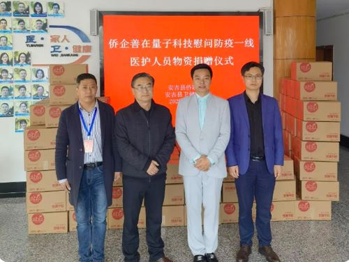 安吉县侨资企业善在量子健康科技有限公司先后通过县卫健局、天子湖镇捐赠300箱润肺冻干砂梨片,慰问在抗疫一线的医护人员和工作人员。捐赠仪式上,公司董事长陈恩军表示,抗击疫情,守护健康,人人有责!希望能够尽己所能,回报社会,为疫情防控的一线工作人员贡献一点绵薄之力。