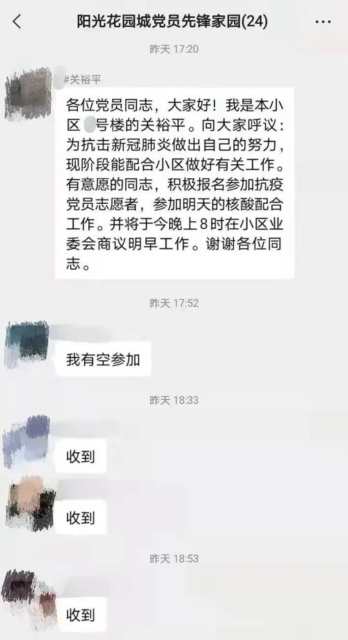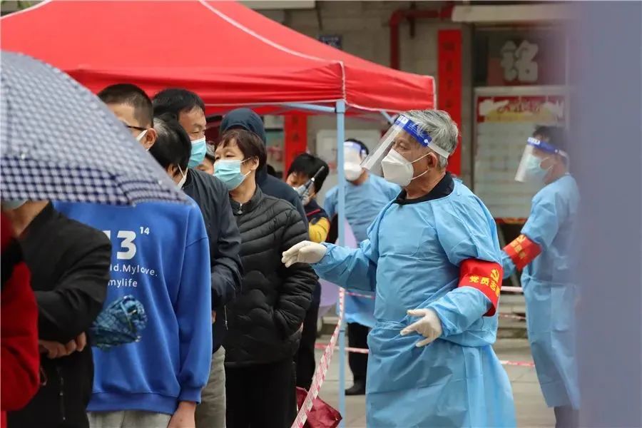看到社区防疫工作人手吃紧,老关不仅自告奋勇参与防疫工作,也充分发挥老党员、老干部的影响力,通过小区党员先锋家园微信群,向小区内的党员发出倡议,共发动十余名党员志愿者组成党员先锋队,共同配合核酸采样工作。