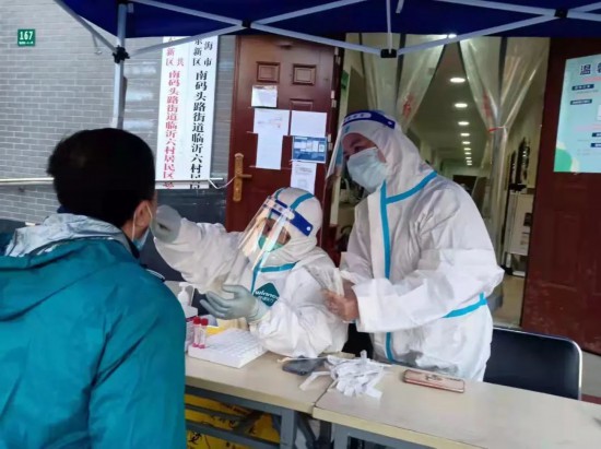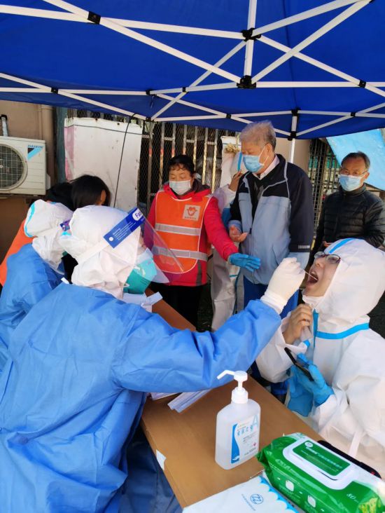 南码头路街道侨联主席张文迈,这位在知青时就有过8年“全科医生”经历的退休医生,一马当先“重操旧业”。她说“曾经的医务工作者,发挥余热责无旁贷!”,在小区封控期间不仅当起了小区居民的“应急医生”,更义不容辞地加入到核酸检测的“大白”队伍中,成为小区居民心目中的“白衣天使”。