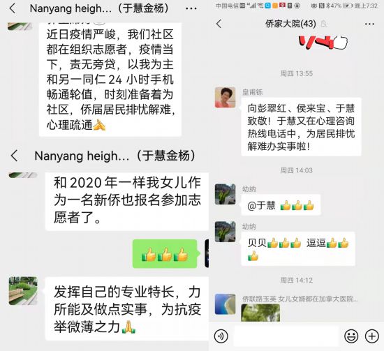 本次疫情防控期间,这条24小时心理热线,由于慧和她的志愿者伙伴、她的新侨女儿值守,继续发挥其独有的作用,为侨界居民心理疏通、排忧解难。近日来,通过电话沟通、跟进,协助解决民事纠纷1起、法律咨询1起,现场接待来访法律咨询2起。在一起租户因疫情突发、个人感情问题无人纾解而可能引发过激行为的紧急求助中,于慧和居委以及她的家人一起协调沟通,及时缓解了这名租户焦虑不安的情绪。