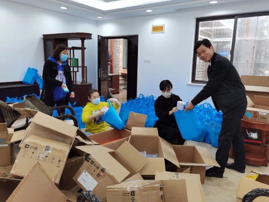 3月25日,松江区侨联收到了来自市华侨基金会的200份“侨爱防疫温暖包”(其中包含消毒洗手液、预防病毒传播的自动洗手机等消毒用品,用于缓解疲劳的肩颈贴、护眼贴以及VC泡腾片等慰问物资),松江区侨联全体机关同志第一时间进行了物资分装,及时联系疫情较为严重的九里亭街道、九亭镇、新桥镇、车墩镇等7个街镇侨联,为基层防疫人员送上一份关心关爱,为侨界群众送去一份温暖。