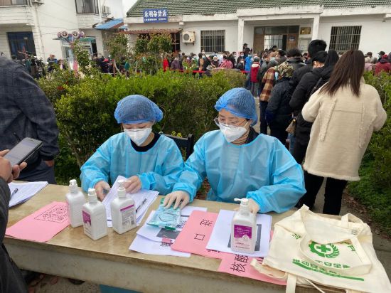 3月26日,松江区域内实施1次新冠病毒抗原筛查,欧美同学会松江分会秘书长袁萍、归国留学人员刘根法等第一时间报名社区志愿服务,协助社区工作人员、医务人员做好相关筛查工作,从白天忙碌到黑夜,挥洒着汗水,为抗疫贡献自己的一份绵薄之力。