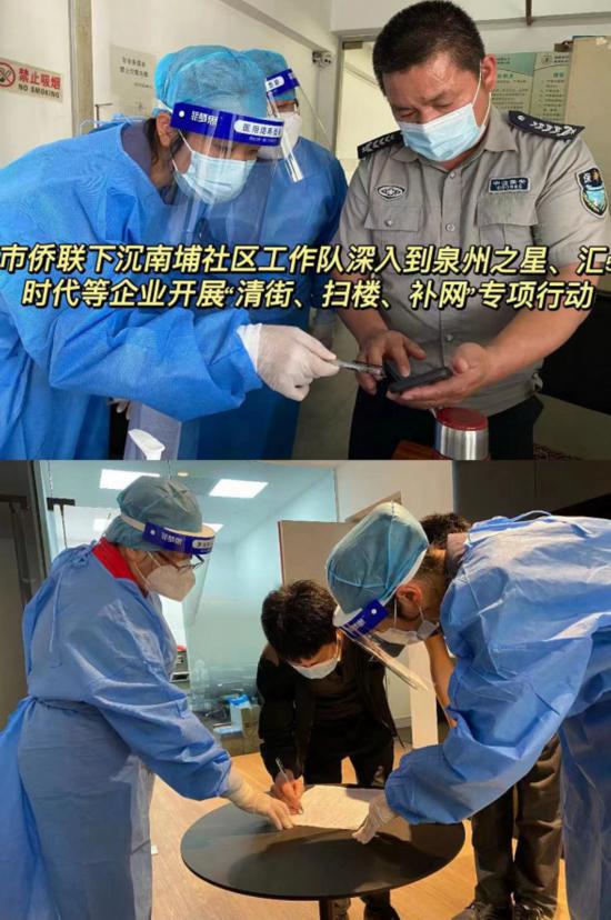 为巩固维护来之不易的抗疫成果,根据福建省泉州市疫情防控指挥部《“清街、扫楼、补网”专项行动方案》的工作部署,泉州市侨联下沉一线抗疫工作队迅速响应,抓紧部署,连夜推进,联合南埔社区开展“清街、扫楼、补网”专项行动,对社区网格、企业、店面、楼房进行全方位排查,确保不落一户,不漏一人。专项行动重点针对企业、店面、群租房等区域,排查5个网格、18家企业、39间店面,共计1673人;比对“三公一大”数据,共排查1526条。共发现4人核酸检测存在问题,其中2名成人未检测,2名婴幼儿未持续检测。