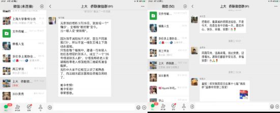 侨眷贾云晞和胡坤慧两位耄耋老人在疫情严峻时期,自觉遵守居家隔离规定,他们发帖一方面表示衷心感谢校侨联领导在艰难时刻还记挂着他们这些老侨,并感谢居委发菜蔬和中药,解决燃眉之急;另一方面表示,上海有难,我们高龄慢病老人不能帮忙,但决不添乱,咬牙克服高血压、心脏病、腰痛、便秘和食物供应等多种困难,过简单生活,并相信战疫胜利的一天终将到来。