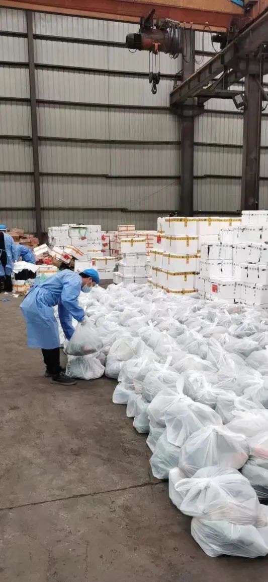 为确保蔬菜的新鲜度,工作人员和志愿者们在种植基地加紧采摘,并马上进行分装、运输,尽最大努力加快速度送到上海人民手中。