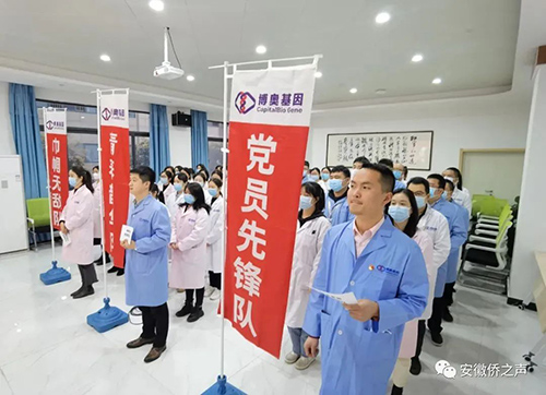 省侨商联合会监事长单位安徽博奥基因成立“党员先锋队”,服务合肥抗疫检测一线。作为“抗疫英雄企业”,广大“博奥人”始终坚守在疫情防控工作第一线,实验室24小时不停地接收标本检测任务,为合肥市的疫情防控作出企业的积极贡献。