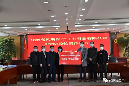 4月16日,省侨商联合会、省侨商联合会副会长单位合肥高贝斯医疗卫生用品有限公司驰援上海战“疫”,向上海市侨商联合会捐赠医疗防护服2000件、口罩20000只,通过防疫物资绿色通道,从合肥直接发往上海。公司董事长高明表示,“这40多天来,我们节假日不放假,加班加点,生产、发货24小时不间断,确保防疫物资第一时间送到战疫一线”。