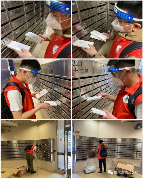 取得捐赠物资后,我会立刻组织行动,金晖当然会长、副秘书长李文喆带领胡雪怡等十多位青年义工担起责任,动员当地社区力量,以邮递、上门派发等方式免接触、免聚集为当地会员街坊和有需要人士实时送上生活必需品和快速检测套装、口罩、84消毒泡腾片等防疫用品,及时将这份爱心送到所服务的基层社区,带去港侨联会的关怀与温暖。