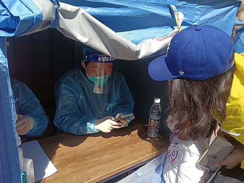 丰台区侨联下沉干部坚决做到党有号召、侨有行动,用奋斗的汗水,不惧困难、勇挑重担,协助完成区域内核酸检测任务,展现了新时代侨联人的优良精神风貌。