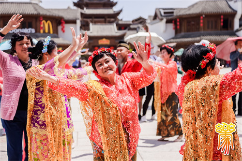 5月3日上午,2022年侨家乐·福建省华侨美食风情文化节闽越水镇专场正式启动。侨胞们载歌载舞,低吟的敲击声,配合音乐的节拍,浓浓的南洋风情点燃现场氛围。