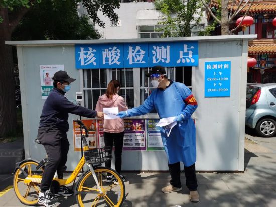 逆行而上,密切协作,齐上阵。5月份以来,人大侨联疫情防控志愿服务队与属地海淀街道侨联联合开展社区疫情防控宣传工作,印制疫情防控履行主体责任须知等宣传材料,走进社区宣传“动态清零”总方针。5月12日,市侨联常委、校侨联主席、留联会理事长、海淀区侨联副主席殷强教授,海淀街道侨联副主席、人大留联会副理事长、物理系教授张芃,人大留联会副秘书长、心理学系李永娜博士,哲学院教授张立波,侨眷、校书法家协会主席孙国农等人大侨联疫情防控志愿服务队员,和海淀街道党群工作办公室负责人胡进军、海淀街道侨联秘书长郭佳欣,区侨联委员、高等教育出版社编辑李晓荣、海淀妇幼医院李苹等同志一同在海淀街道的社区、核酸检测点参与疫情防控。