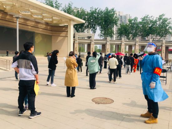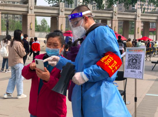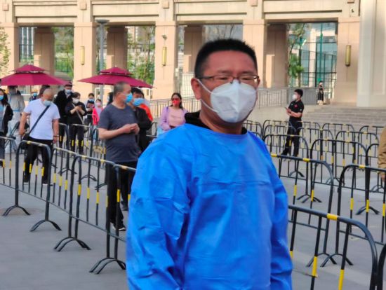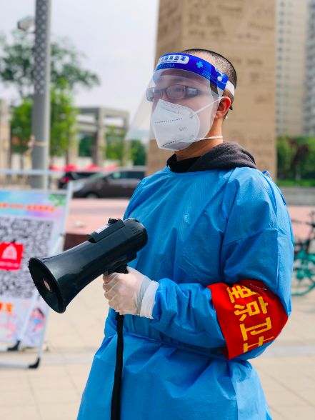 就在袁乾铭提供志愿服务的同时,望京国际人才志愿服务队的杨超、任波、周怡等7名成员还奋战在望京体育公园和首开广场两个检测点。5月9日下午2点30分,志愿者杨超作为登记人员已经奋战了两班了,他化身“大白”,每工作2小时再“换岗”,到了中午,他的脑门和手心已经开始淌汗,但一想到自己每一班会为100人录入信息,他就特别有成就感。杨超还是望京肯跑团团长,他和一群志同道合的跑友常年坚持锻炼,在他的带动下,肯跑团团友也加入到志愿者队伍中,“跑步的人都有凝聚力,也比较阳光,愿意帮助他人。”杨超说。