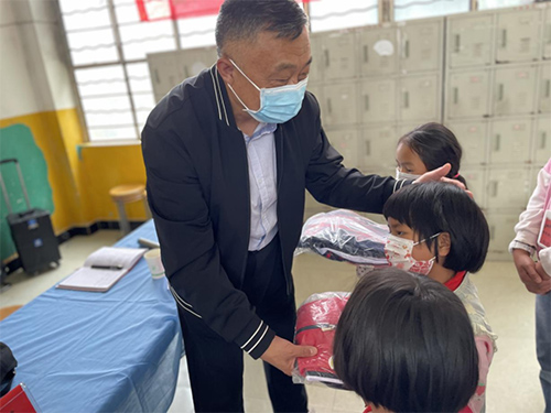 仪式上,参加活动的领导向九石完小学生捐赠了价值5万余元的140套校服和1台可供140多人饮用的大型热水器。