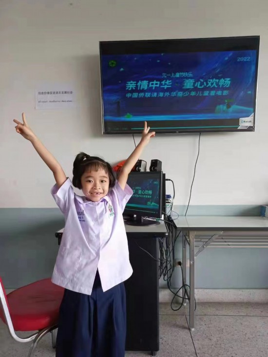 泰国DANGPAO(SINGSUKBURANA)学校邓筠舒:非常高兴能在云端参加中国侨联主办的“亲情中华·童心欢畅”六一观影活动。听到了侨联主席万爷爷的亲切讲话,收到了万爷爷带来的节日祝福与祖国的殷切厚望,我怀着雀跃无比的心情和爸爸妈妈一起看完了一部又一部精彩的儿童电影,从《我和我的父辈》到《小虎墩大英雄》《北京童谣》《恐龙日记》等,我深深感受到了华语的优美动听,中华文化的博大精深,童谣歌曲的魅力,一切都值得我们好好学习,努力传承。我在泰国一定会继续学好自己的母语。作为班长,我也会带着我的同学朋友们一起学习汉语,了解中国,以后有机会一起去游故宫爬长城!