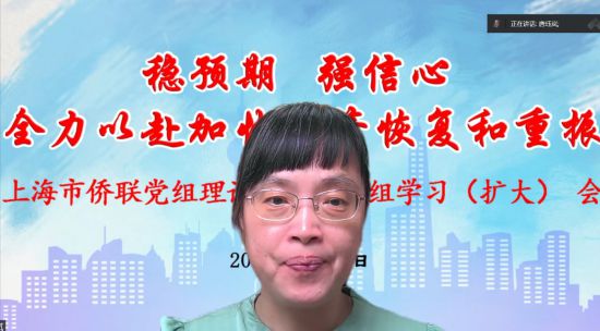 6月21日下午,上海市侨联召开党组理论学习中心组学习(扩大)会,围绕“稳预期、强信心,全力以赴加快经济恢复和重振”的主题,邀请市委党校经济学教研部主任唐珏岚教授作辅导报告。