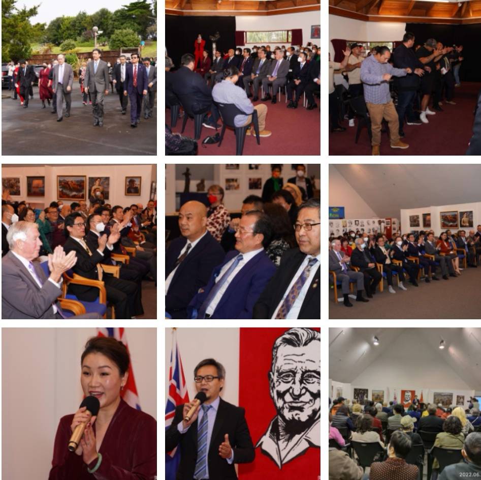 为庆祝新中建交五十周年暨纪念路易.艾黎诞辰125周年,由新西兰和平之友联谊会主办的“新中友谊纪念展”开幕式于2022年6月17日下午在奥克兰市北岸的毛利会堂(Te Whanau O Awataha Marae )隆重开幕。开幕式由冷雪菲主持。