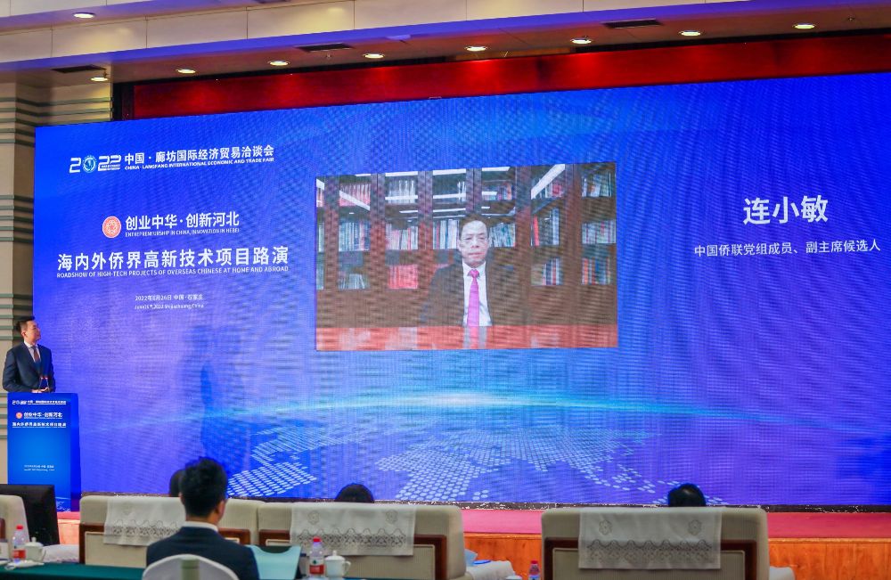 6月26日,作为“中国·廊坊国际经济贸易洽谈会”子活动——2022“创业中华·创新河北”海内外侨界高新技术项目路演活动在石家庄举行。中国侨联党组成员、副主席候选人连小敏发表视频致辞,中国侨联副秘书长、经济科技部部长赵红英,中国侨联经济科技部副部长、一级巡视员、中国侨商联合会副会长兼秘书长夏付东,河北省侨联党组书记、主席付辉东,副主席兼秘书长任卓平以及中国侨联特聘专家委员会专家、中国侨商联合会代表等通过线上、线下形式出席活动。