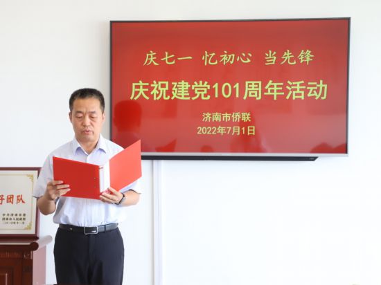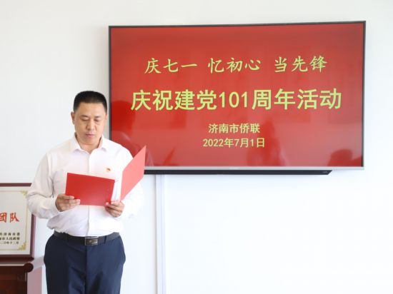 为庆祝建党101周年,教育引导党员不忘初心、牢记使命,喜迎二十大、奋进新征程,7月1日下午,市侨联举办“庆七一 忆初心 当先锋”——庆祝建党101周年活动。市侨联党组书记、主席米文芃出席活动并讲话。
