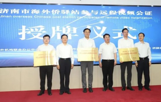 仪式上,市侨联和齐鲁公证处就推荐海外侨驿站作为远程视频公证见证处、参与远程视频公证服务签署了合作协议。