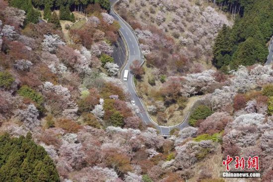 图为日本奈良吉野山樱花盛开,风景优美。图片来源:视觉中国