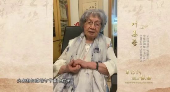 中国古典诗词专家、天津侨联高级顾问叶嘉莹先生也通过视频向大家祝端午安康,叶嘉莹的诗词《水云谣》也在公益片中展示。片中由海河传媒中心著名主持人赵巍、苗青、柴巍、刘涛以及天津人艺著名话剧演员王雅迪诵读《端午》、《芒种》、《小暑》、《夏至》、《立秋》五首诗词作品,由单弦名家刘秀梅、天津市曲艺团优秀单弦演员陈丽华、王鸿亮,以及“鱼龙百戏人才计划”演员王石青春、程淑杰演唱的岔曲作品,旋律优美,声情并茂。
