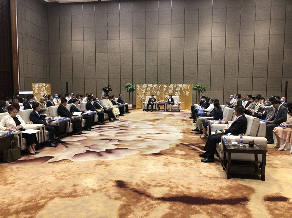 7月25日下午,海南省委常委、统战部部长苗延红在海口会见连小敏及中国侨商联合会代表团一行,并座谈交流。