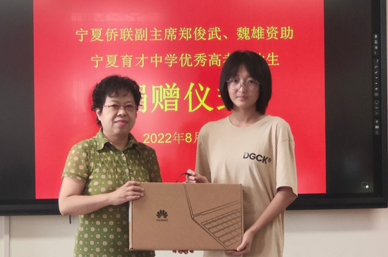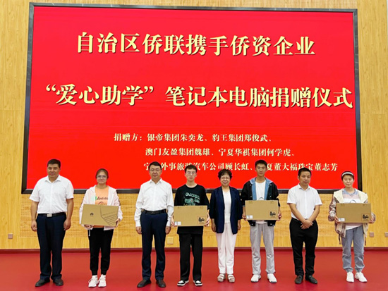 为贯彻落实宁夏第十三次党代会精神,深入开展“大学习、大讨论、大宣传、大实践”活动,8月18日至19日,宁夏侨联组织爱心侨企分别在宁夏育才中学和固原市原州区开展向山区家庭贫困优秀高考毕业生爱心捐赠笔记本电脑活动。