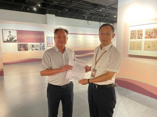 中国侨联海外委员、广东省江门市侨联荣誉主席、秘鲁中华通惠总局主席梁顺代表秘鲁中华通惠总局将三封由秘鲁中华通惠总局在抗击新冠肺炎疫情期间发出的致旅秘侨胞呼吁书原件捐赠给中国华侨历史博物馆。臧杰斌馆长接受捐赠并代表侨博向梁顺主席表示感谢。