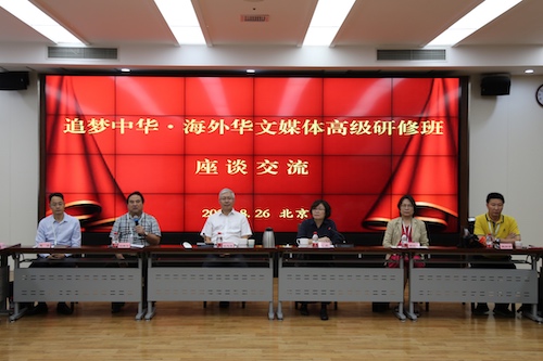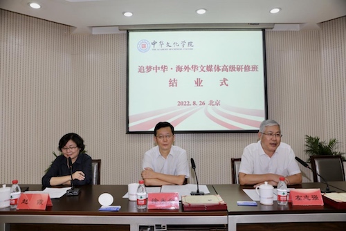 8月26日,由中国侨联和中华文化学院联合举办的“追梦中华·海外华文媒体高级研修班”在北京结业。中国侨联信息传播部部长左志强,中华文化学院秘书长徐永全出席结业式并讲话。