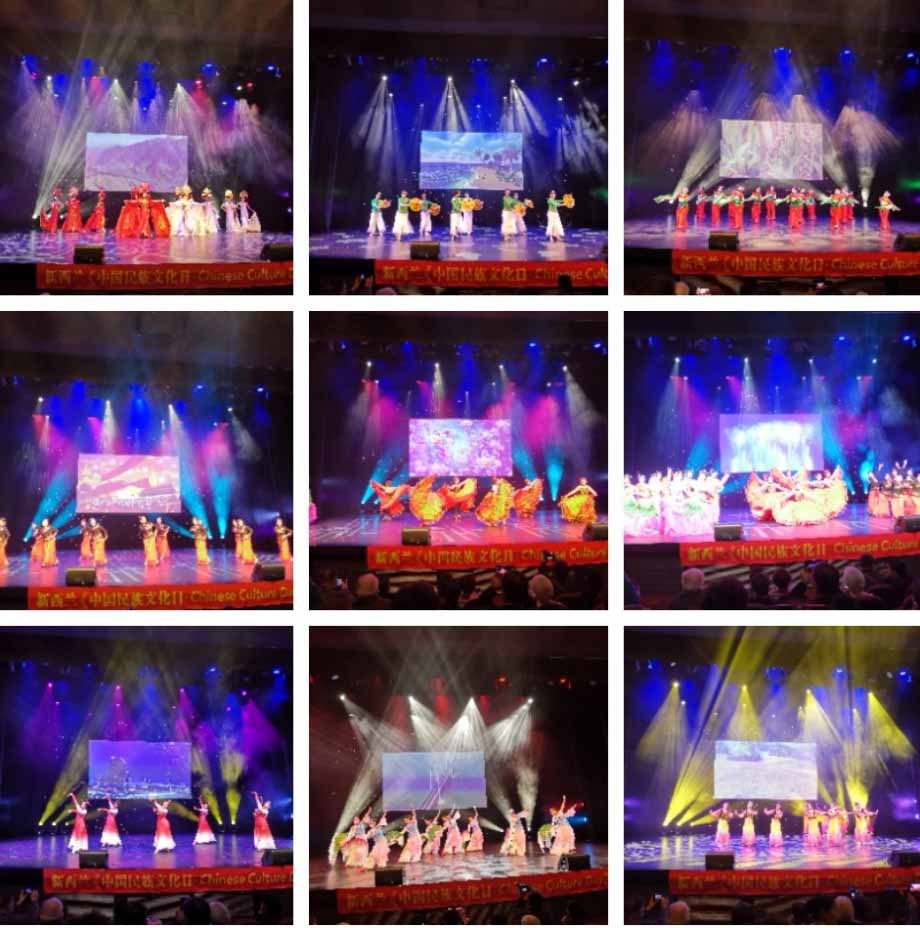 在连续3个小时的文艺演出中,每一首美妙动人的歌声回荡在演出大厅,打动着每一位观众的心,用深情歌唱祖国,用舞姿颂扬新-中友谊,用旋律表达了海外侨胞爱国之情。来自新西兰华侨华人联合会艺术团和奥克兰艺术团体表演了精彩的文艺节目,华服时装秀,大唐盛世,瑜伽舞韵,拉丁舞,新疆舞等等,给大家呈现了一场精彩艳丽的文化盛宴,优美的舞姿,赢得了观众的阵阵掌声。