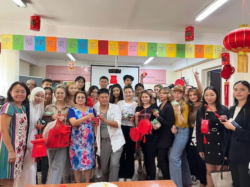 “铁观音、大红袍、白茶,味道真不一样,太神奇了”,当地时间9月10日,吉尔吉斯-俄罗斯斯拉夫大学的中文课堂里,一场别开生面的中秋活动正在热烈进行。这是吉尔吉斯“福茶驿站”应邀走进校园,通过举办“博饼”茶话会,让当地大学生了解中华文化的一次交流活动。吉尔吉斯福建总商会会长林金电先生介绍到:“参加活动的100多位大学生,大部分都是吉尔吉斯斯坦人,我们和这些大学生们共度中秋,一起博饼,并给他们讲中国茶文化,介绍中秋节日由来,让他们更好地了解中华文化”“原本预计2小时的活动,因为学生们的热情参与持续了4小时之久”。