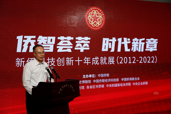 万立骏在讲话中指出,新侨科技创新十年成就展在距离党的二十大召开还有不到一个月时开幕,恰逢其时,对于我们坚持以习近平新时代中国特色社会主义思想为指导,坚定战略自信、保持战略清醒、增强信心斗志,进一步凝聚侨心侨力侨智,以踔厉奋发之姿迎接党的二十大胜利召开,具有重要意义。展览是党的十八大以来侨界为我国科技事业发展作出重要贡献的辉煌见证。以习近平同志为核心的党中央把科技创新摆在国家发展全局的核心位置,发出建设世界科技强国的号召。展览以获得中国侨联“侨界贡献奖”人才的成果为载体,通过创新成果生动形象再现了在党中央坚强领导下,侨界参与建设创新型国家的光辉历程,从一个侧面客观真实反映了我国自主创新的实力和科技发展的水平,充分展示了科技进步对我国经济社会发展的引领支撑作用。展览是中国侨联选树优秀侨界科技工作者工作的生动缩影。中国侨联“侨界贡献奖”受表彰的人员中,既有像带领团队为我国“巡天探地潜海”填补多项技术空白的侨界楷模黄大年这样的代表性人物,也有许多扎根基层、为科技创新开辟新道路默默奉献的侨界科技工作者。他们共同的特点是,把爱国之情、报国之志融入到祖国改革发展的伟大事业之中,融入到人民创造历史的伟大奋斗之中。通过展览展示他们的成就,宣传他们矢志报国的精神,对于激励侨界人才立足本职、建功立业、报效国家将起到重要推动作用。展览是中国侨联迎接党的二十大胜利召开,学习宣传贯彻党的二十大精神的重要举措。深刻认识党的二十大对团结和激励全国各族人民为夺取中国特色社会主义新胜利而奋斗的重大意义,为党的二十大召开营造良好氛围,并持续学习宣传贯彻党的二十大精神,是中国侨联今年的重要工作。广大归侨侨眷和海外侨胞要以“侨界贡献奖”获奖者为榜样,大力弘扬爱国主义精神、科学家精神、求实精神、创新精神,把握历史大势,牢记初心使命,立足本职建功立业,积极投身改革创新一线,埋头苦干、砥砺前行,为实现第二个百年奋斗目标和中华民族伟大复兴的中国梦作出新的更大贡献!