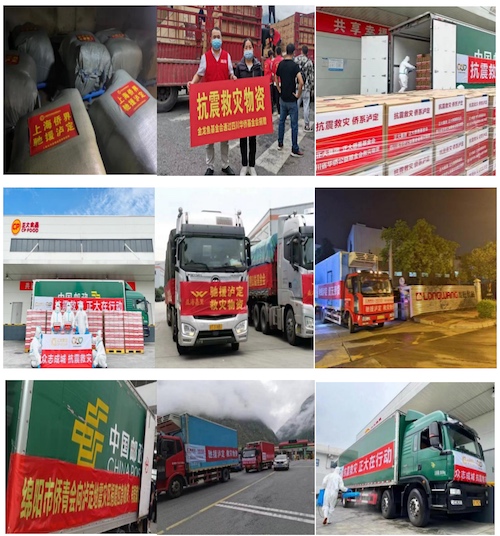 在地震爆发前几天,四川疫情防控形势异常严峻,成都处于封控状态,侨资企业益海嘉里和所属金龙鱼慈善公益基金会克服疫情重重困难,连夜调配物资。后来经过相关部门的沟通协调,星夜兼程将56吨价值50万元的米、面、油等生活急需品驰援泸定灾区。