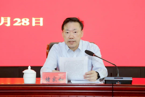 图为省侨联兼职副主席、中国科学技术大学党委常委、统战部长褚家如出席会议并传达有关文件
