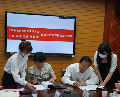 随后,臧杰斌馆长、张宝秀院长共同签署了中国华侨历史博物馆与北京联合大学应用文理学院《校外人才培养基地建设协议书》。