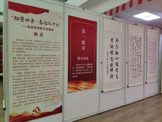 本次书画展由北京市侨联主办,丰台区侨联和北京市华侨服务中心承办,“侨之家·怡海社区”、北京华商会等基层侨联组织共同参与。共征集到230多幅首都侨界群众书画作品,从中选择120幅精品力作,分“侨心向党”、“壮丽山河”、“幸福生活”三个篇章,将先后在“侨之家·怡海社区”和市民主党派人民团体大楼进行为期2周的巡展。书画作品体现了首都侨界群众的文化造诣,展现了爱党爱国的深厚情怀和对未来愿景的美好期盼,为迎接党的二十大胜利召开营造良好氛围。