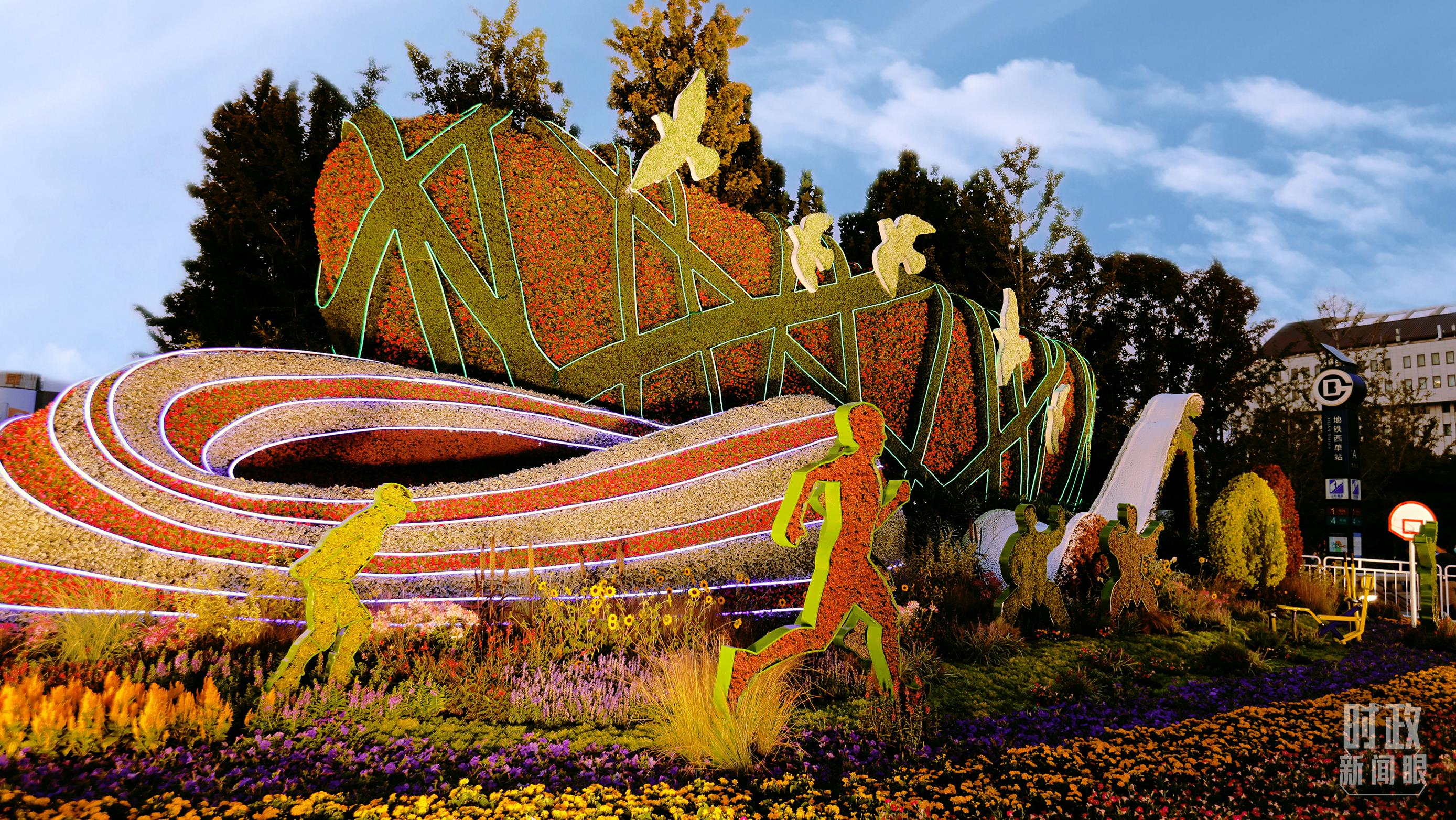 △北京长安街沿线的“健康生活”主题花坛。(总台央视记者魏帮军拍摄)