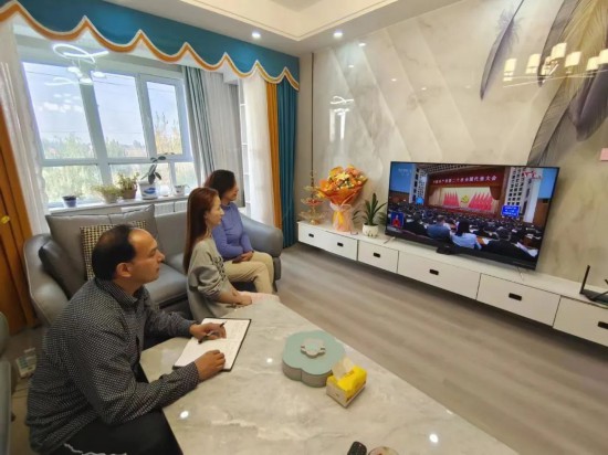 尼勒克县侨眷在家中观看党的二十大开幕会盛况