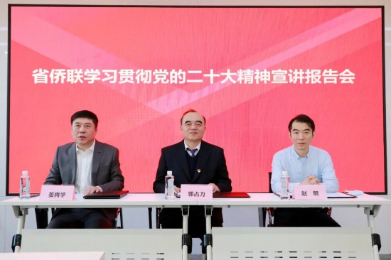 郭占力详细阐述了党的二十大的划时代意义和重大成果,他指出,党的二十大是在全党全国各族人民迈上全面建设社会主义现代化国家新征程、向第二个百年奋斗目标进军的关键时刻召开的一次承前启后、继往开来的大会,是一次高举旗帜、凝聚力量、团结奋进,开创党和国家事业发展新局面的大会。郭占力围绕党的二十大主题、牢记“三个务必”、过去5年的重大成就和新时代10年的伟大变革、开辟马克思主义中国化时代化新境界等对党的二十大精神进行了全面、深入、系统宣讲阐释解读,并就习近平总书记在二十大报告中提出的“十年来,我们经历了对党和人民事业具有重大现实意义和深远历史意义的三件大事”“加强和改进侨务工作,形成共同致力民族复兴的强大力量”等内容同与会人员进行了深入交流。
