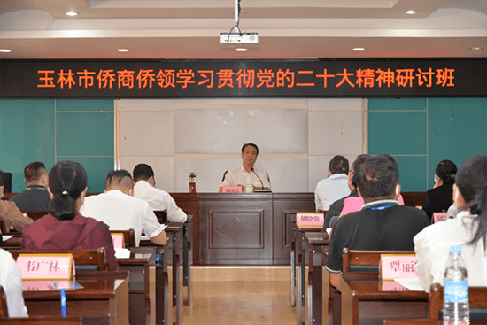 11月10日,市侨联、市侨办举行玉林市侨商侨领学习贯彻党的二十大精神研讨班,市委常委、统战部部长邓国忠作专题辅导报告